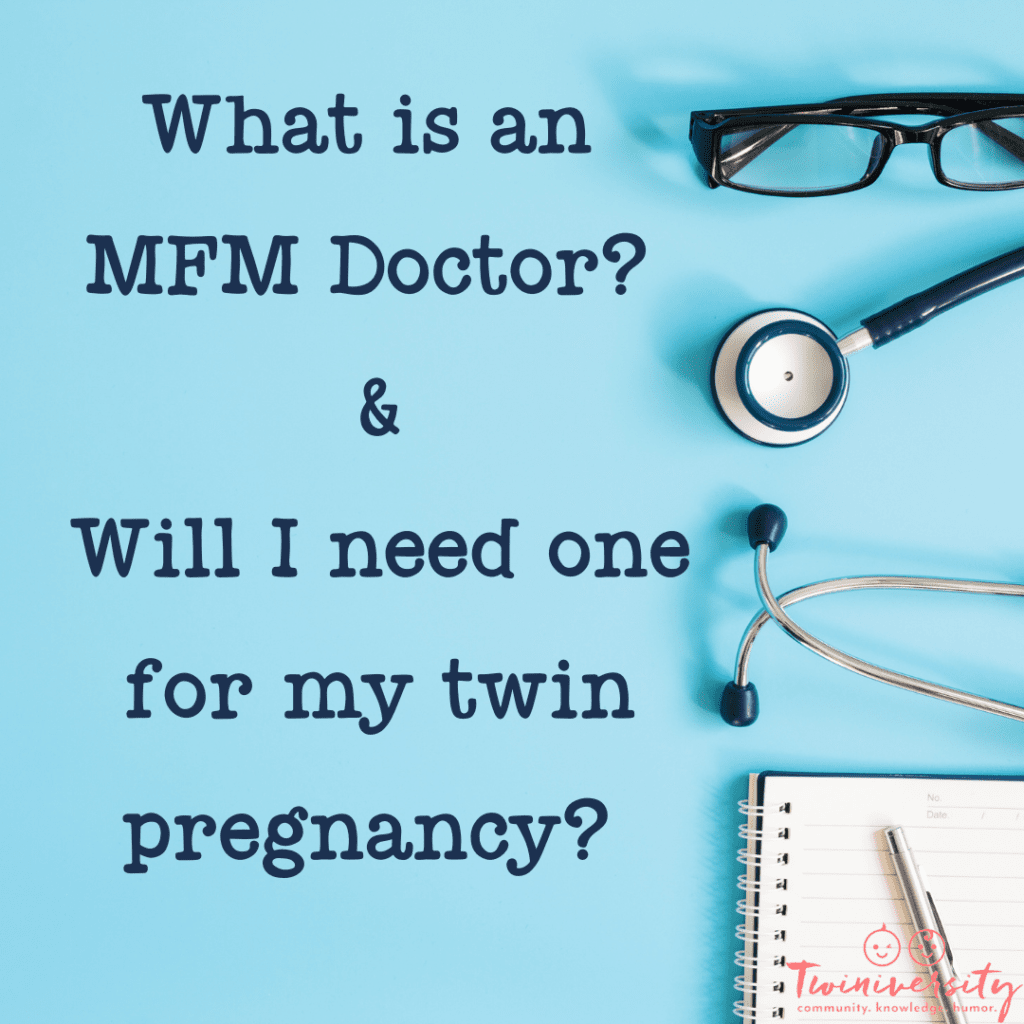 Do I need an MFM if I’m having twins? This is a question that many pregnant women ask at Twiniversity twins class on a regular basis. MFM stands for Maternal-Fetal Medicine. It’s a subspecialty of obstetrics and gynecology and often twin moms get referred to in addition to their OB. A Maternal-Fetal Medicine specialist is focused on the health of mom and baby or babies, as well as any risks associated with pregnancy such as gestational diabetes, TTTS, TAPS, preeclampsia. They can be found at hospitals with specialized MFM services.